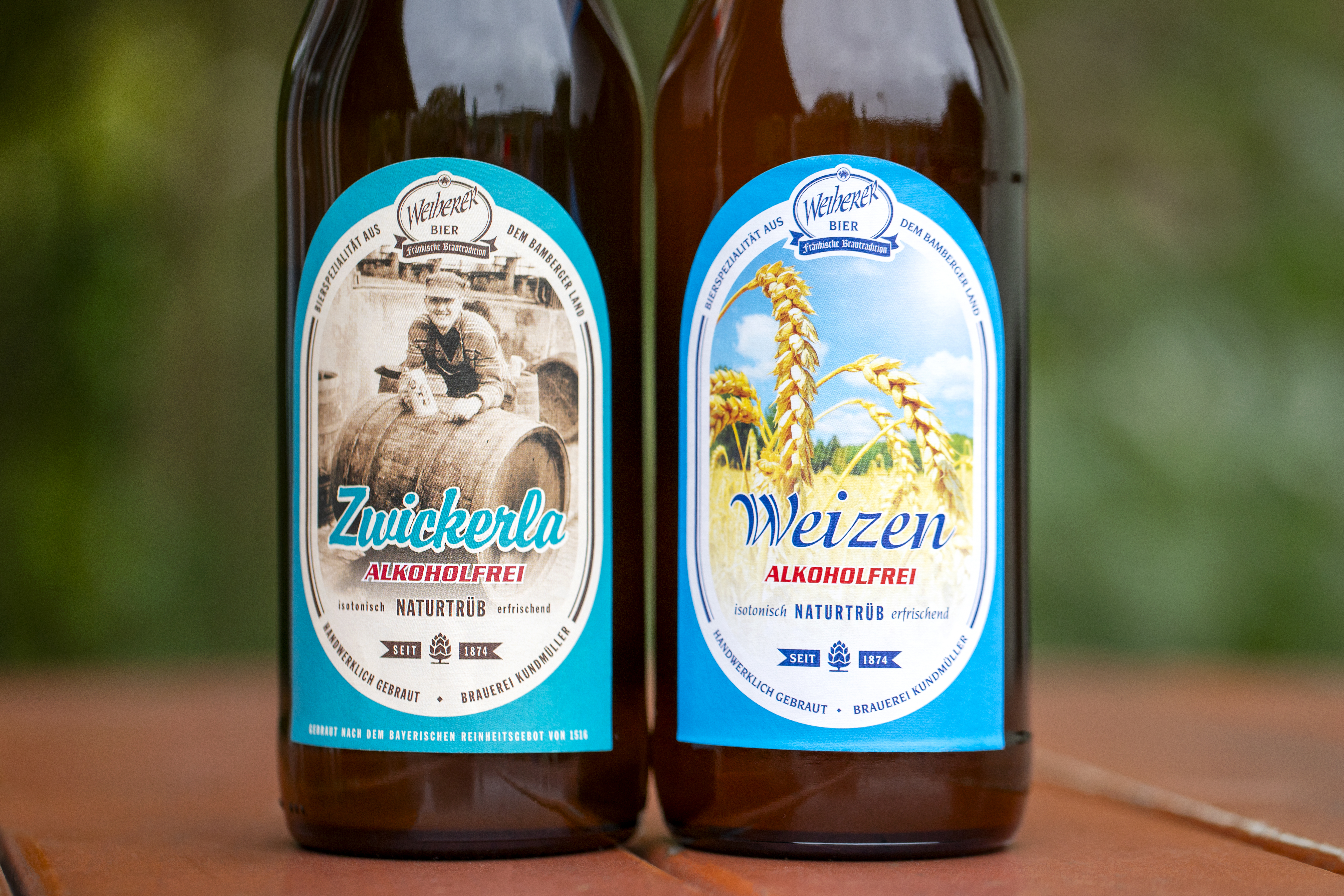 Naturtrüb, fruchtig, erfrischend - das sind die beiden Biere der Serie Weiherer Alkoholfrei. Hier klicken, um mehr über die Biere erfahren.